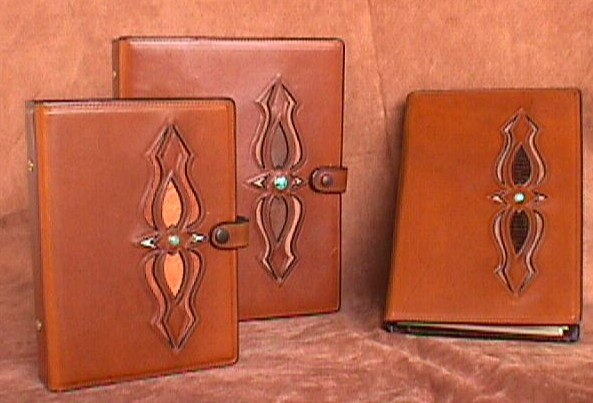 Shown here are some planners in light latigo with one of our many inlaid designs in various complimentary exotic skins.
